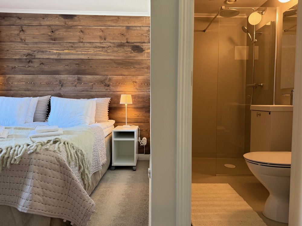 Strandlogiet erbjuder olika typer av boenden. Rum i olika storlekar samt studiolägenheter som är lite större.